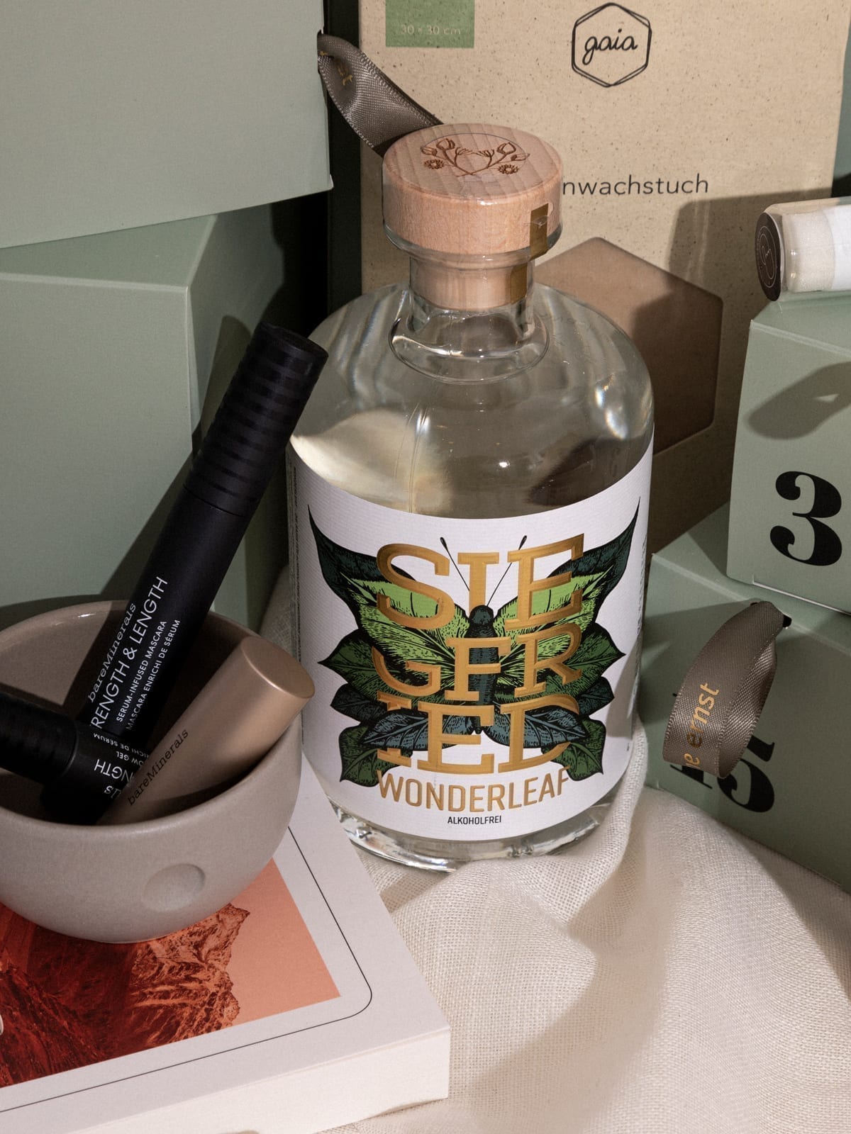 Die begehrten Météroites von Guerlain werden in Originalgröße hinter einem Türchen auf Euch warten und die Haut mit einem wunderbaren Glow in den Tag starten lassen. bareMinerals sorgt für den zusätzlichen Wow-Effekt von Brauen, Wimpern und Lippen. Auch Euer Haar wird bestens vom italienischen Unternehmen Davines mit Pflege umsorgt werden. Für die perfekte Entspannung dürft Ihr zu Eurem Beauty Ritual einen heißen Tee aus den in Siegburg designten und im Westerwald handgefertigten ‚Ruhepunkt‘ Tasse genießen. Ebenso Beautyfreundlichen Genuss bringt eine köstliche wie wunderschöne Flasche WONDERLEAF, die alkoholfreie Variante des SIEGFRIED GINs, mit ins Spiel. Und was passt zu einem entspannten Drink besser, als ein Stück zarte Schokolade. In unserem Fall raten wir Euch zu einer Sorte der herrlich natürlichen und nach biologischen Standards hergestellten holy sh*ocolate. Die wir selbstverständlich auch im Kalender für Euch versteckt haben. Mit diesen liebevoll gefertigten Produkten ist eine Auswahl entstanden, die alle Sinne vergnügt und uns ausgiebig genießen lässt. So sind einige wohlige & vorweihnachtliche Abende mit einer guten Freundin oder sich selbst garantiert!