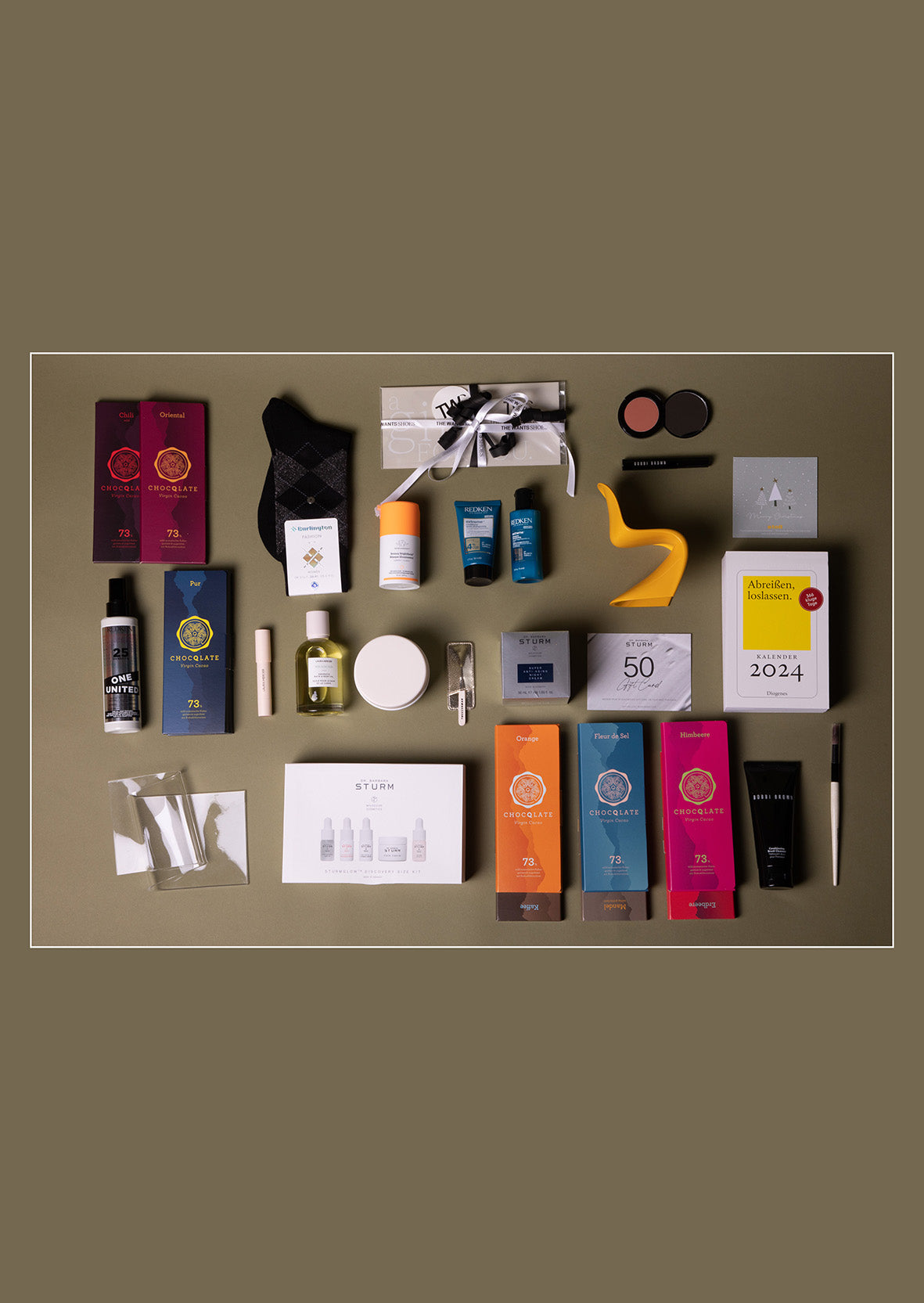 Bobbi Brown, Burlington, Chocqlate, Diogenes, Dr. Barbara Sturm, Drunk Elephant, Laura Mercier, Malizee, Redken, Stoll, The Wants Shoes und Tweezerman.