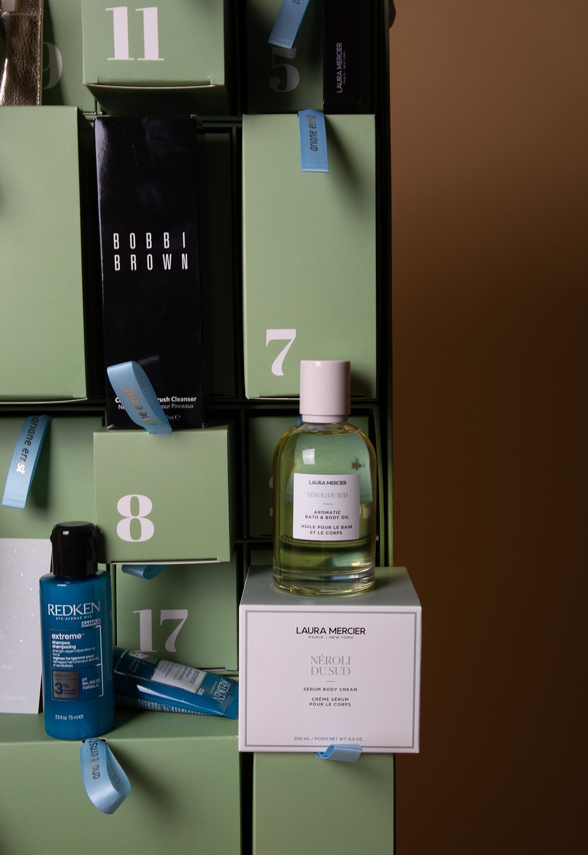 Damit ihr euch in der Vorweihnachtszeit verwöhnen könnt, erhaltet ihr ein aromatisches Bade- und Körperöl von Laura Mercier. Dazu gibt es die passende Body Cream, die eure Haut mit Feuchtigkeit und einem frischen Duft verwöhnt. Der langanhaltende und pflegende Lippenstift, ebenfalls von Laura Mercier, sorgt für einen festlichen Make-Up Look.