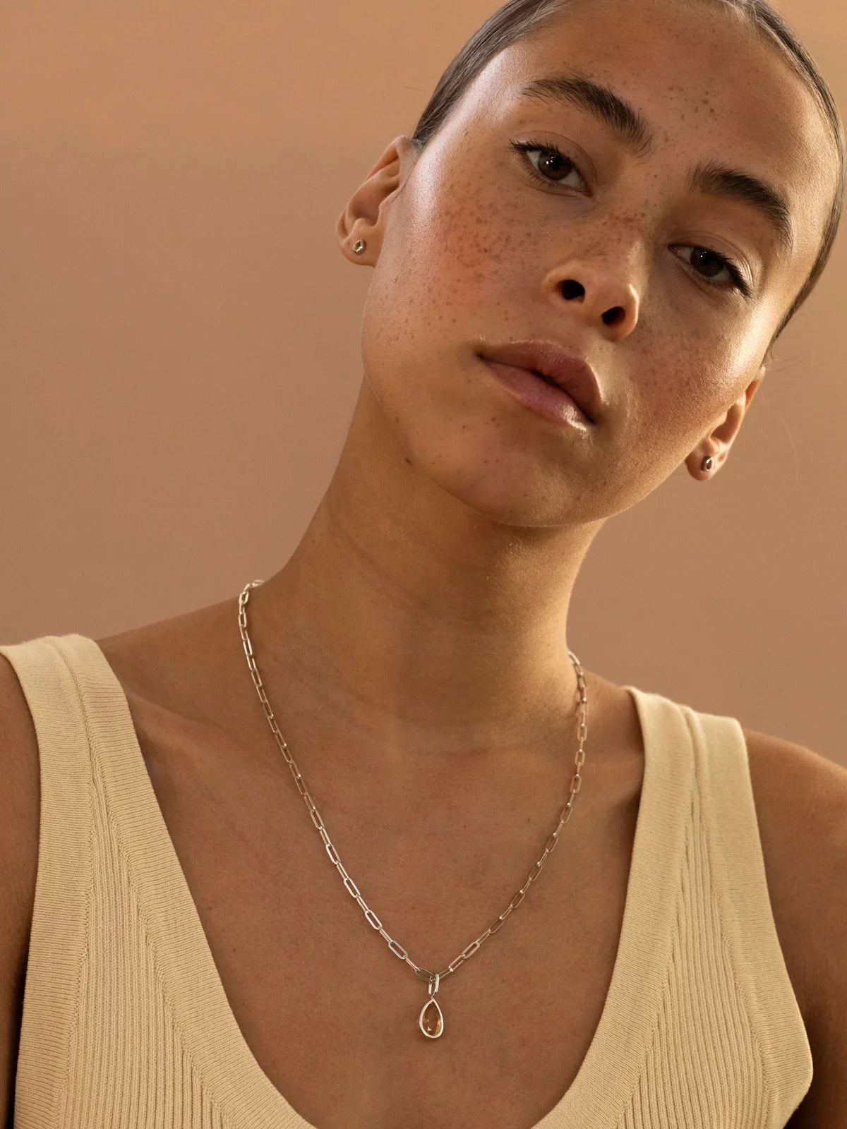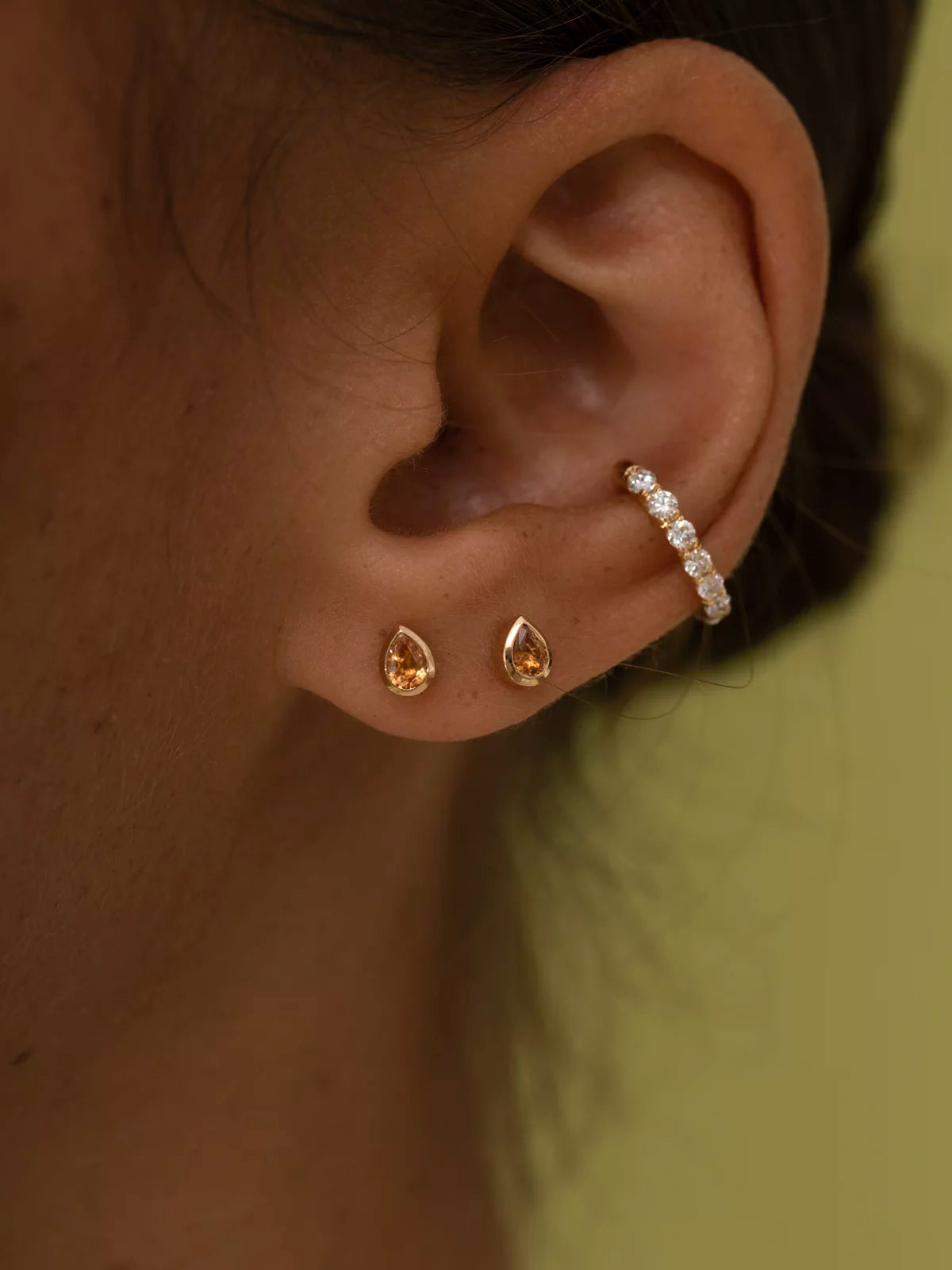 Des weiteren wird der beliebte drop stud ebenfalls erweitert durch einen Hessonit oder auch Mandarin Granat. Gefasst sind beide Schmuckstücke in 18kt Gold. Das Edelmetall wird stets aus einem Recycling-Kreislauf heraus gewonnen. Wir arbeiten bei all unseren Schmuckstücken mit deutschen Scheideanstalten zusammen. Unsere Edelsteine sind fairtrade gehandelt.