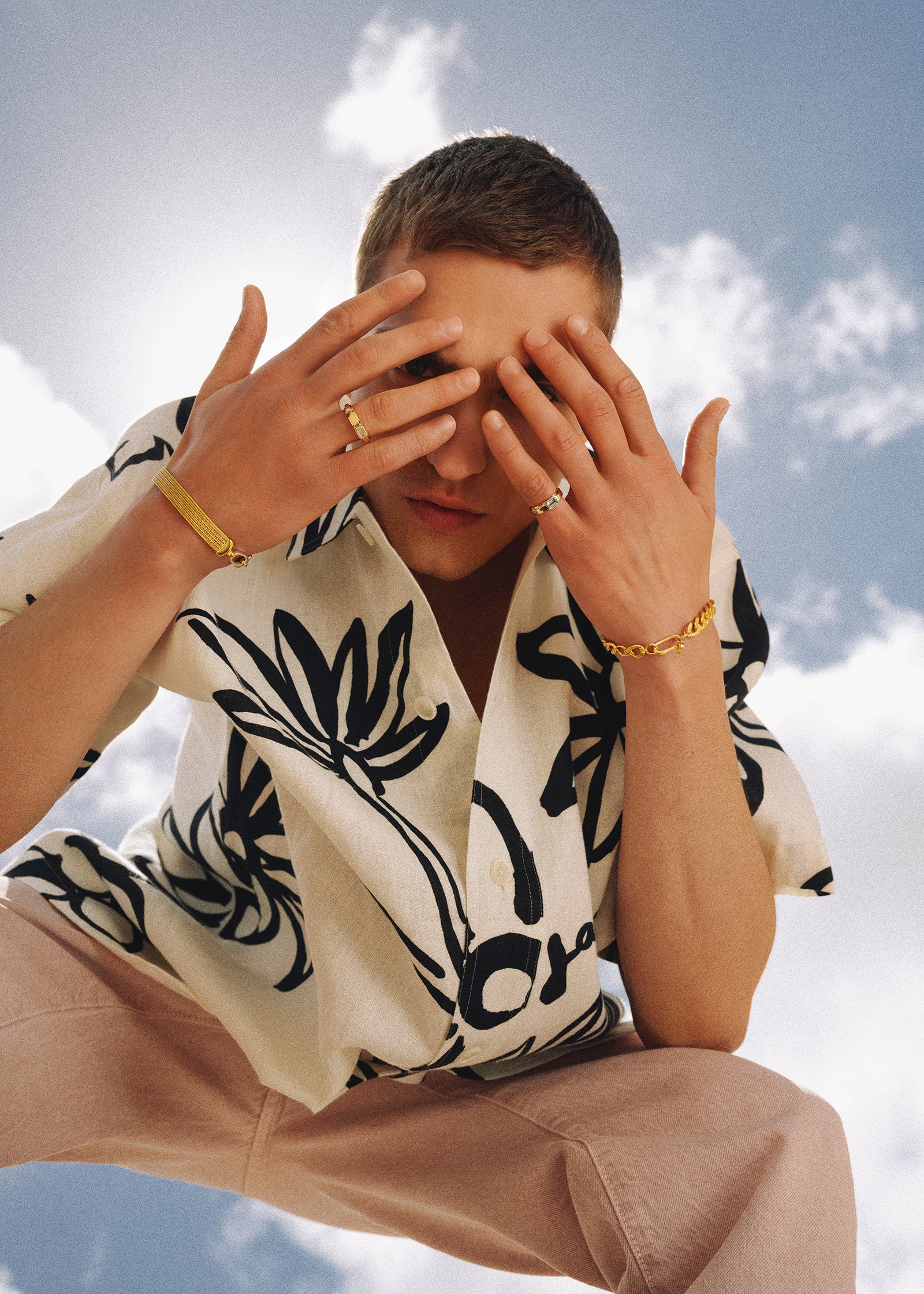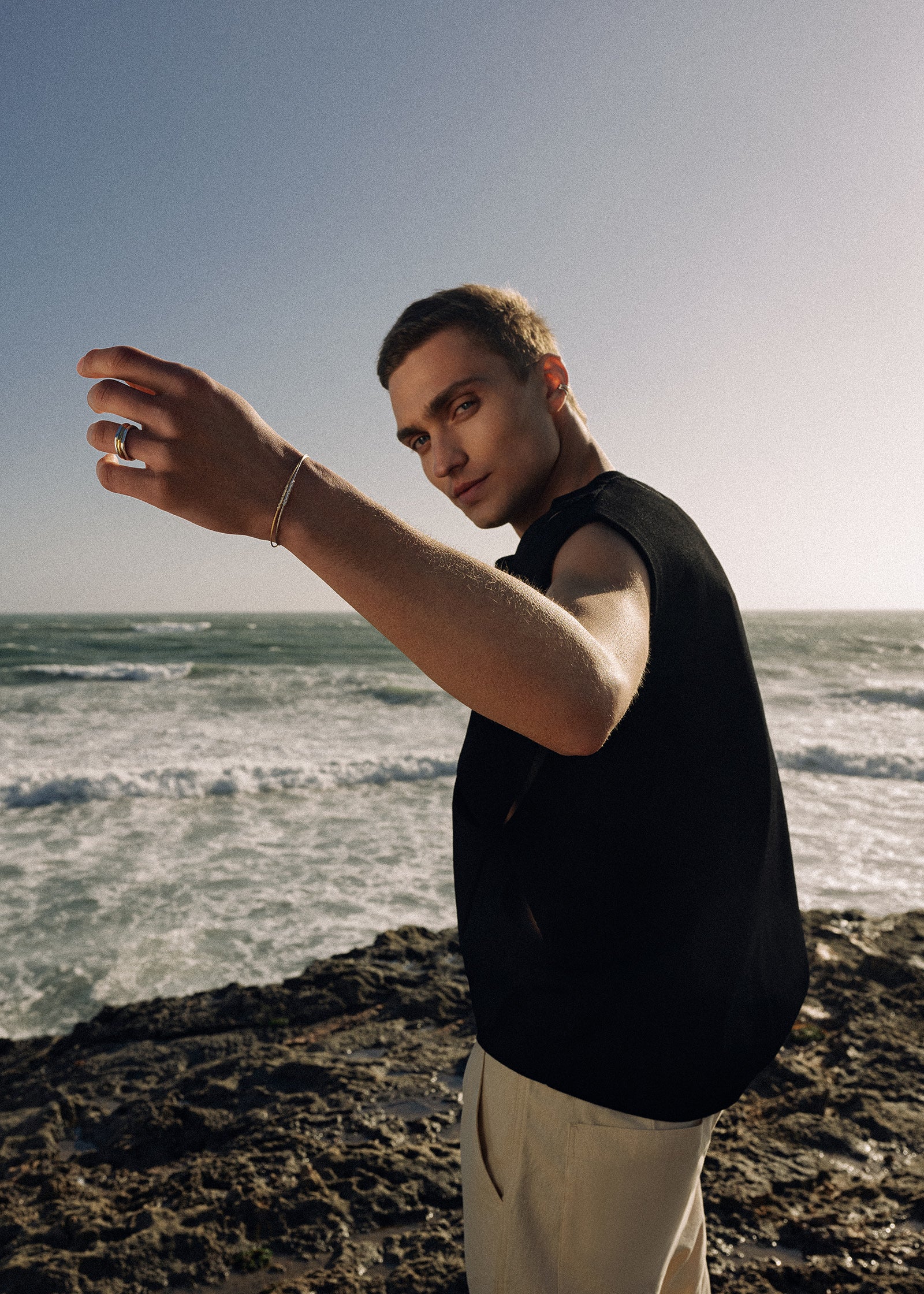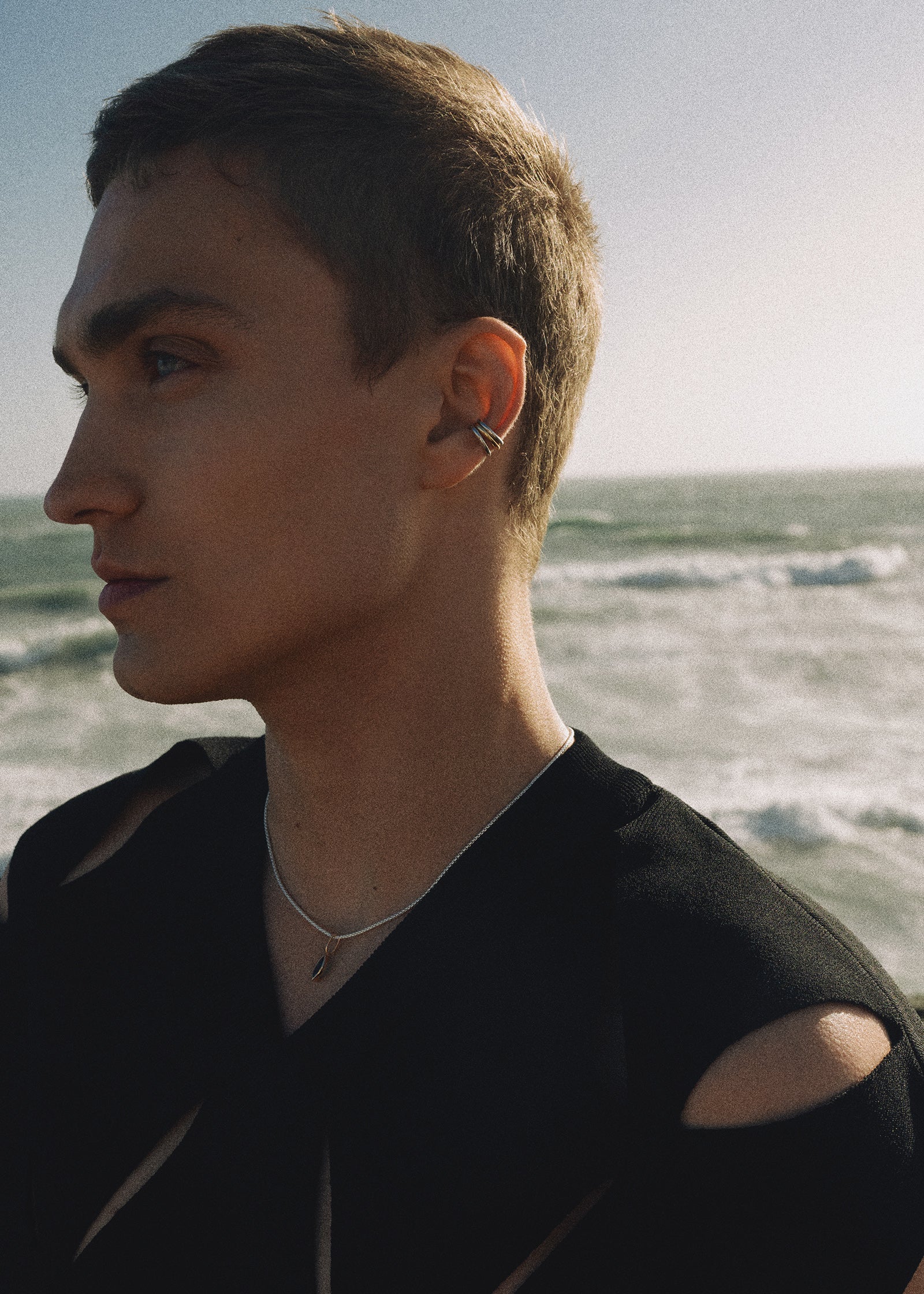Wer es hingegen nicht so auffällig mag oder sich mit Schmuck vertraut machen möchte, kann schon mit kleinen Details einen besonderen Look kreieren. Der sterling earcuff oder make a wish ring sind beides zeitlose Designs, die auch als Stacking getragen werden können.