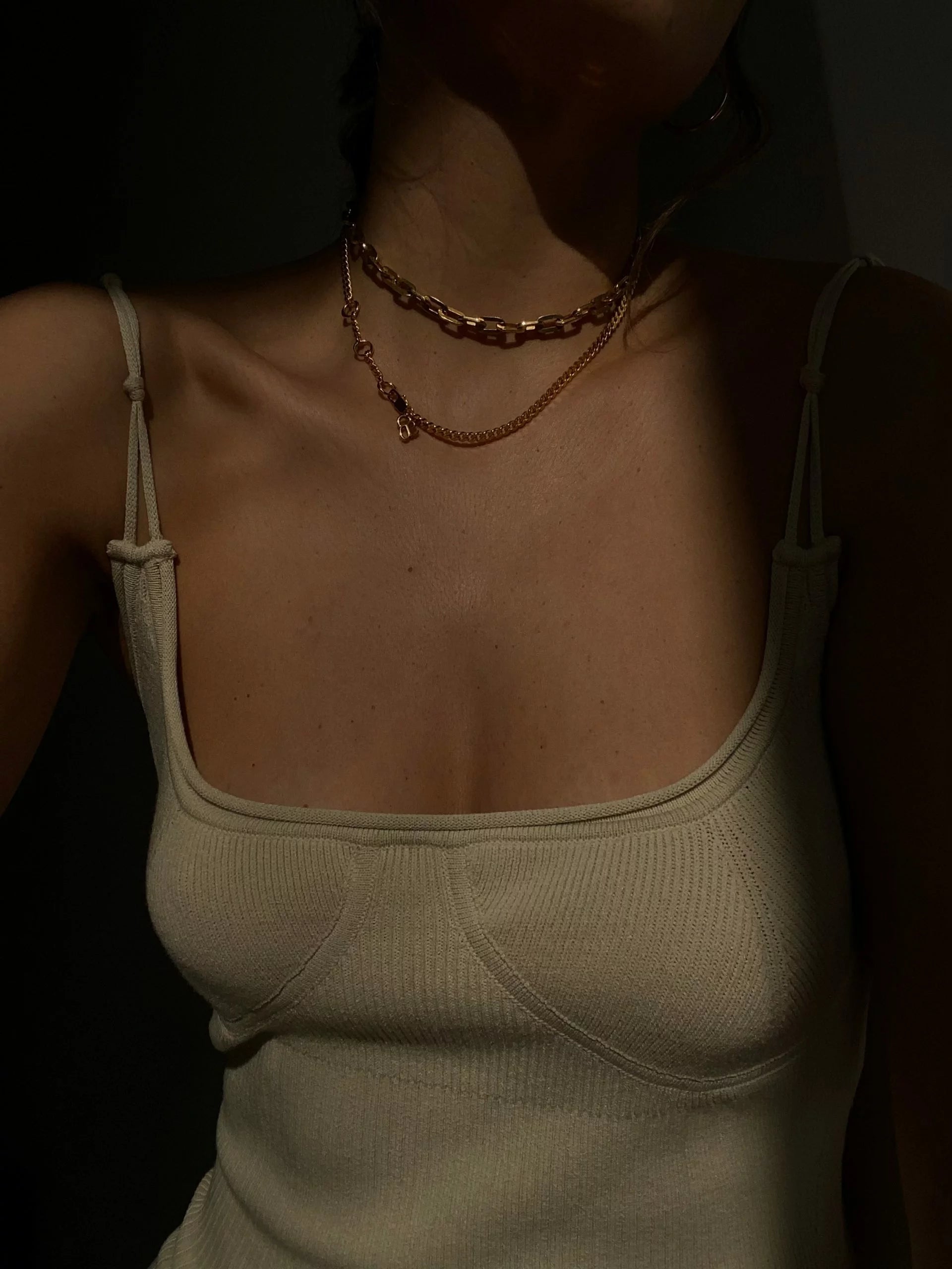 Anna Winter setzt gekonnt unsere ae classics in Scene. Die tank no.4 kombiniert mit der bold chain plus die bold creolen II. wirken bei ihr so selbstverständlich und keineswegs überladen. Sie steht für cleane, selbstbewusste und boyish feminine Looks. Wer noch mehr Inspiration sucht sollte auf jeden Fall ihren IG Kanal @annawntr folgen