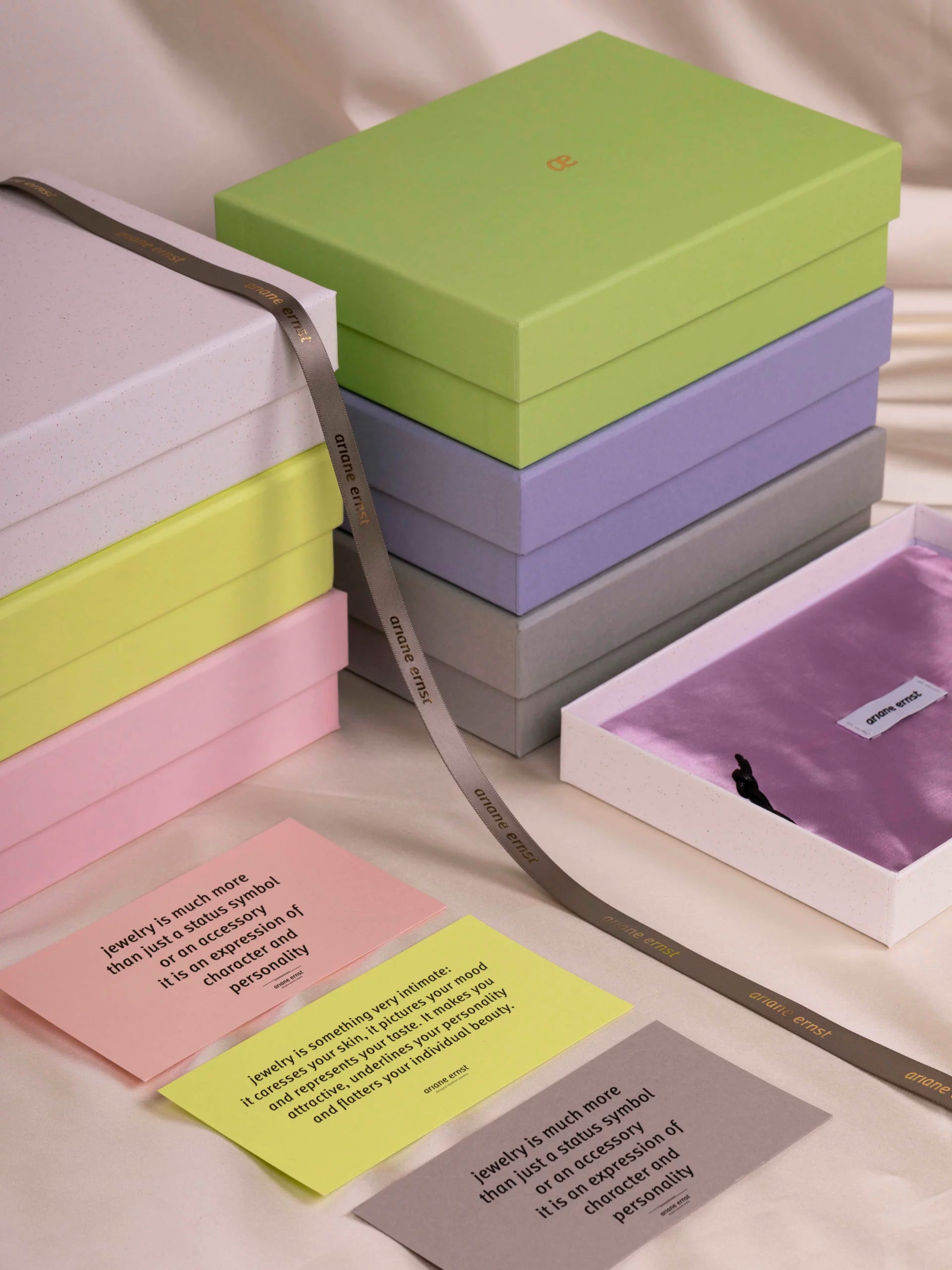 Neben den lokal gefertigten Schmuckstücken, legen wir auch bei unserem Packaging Wert auf Langfristigkeit. Sowohl unsere verschiedenfarbigen Boxen, als auch unser kleiner Satinbeutel, können zur Aufbewahrung verwendet werden. Wir würden uns freuen, wenn diese liebevoll gefertigten Produkte nachhaltig genutzt und kreativ zweckentfremdet werden.