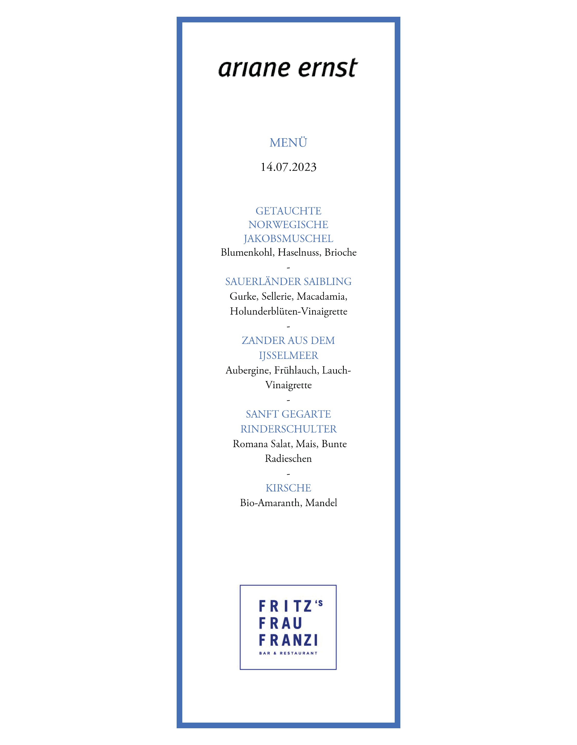 Anlässlich unseres 10. Geburtstags möchten wir Euch zu einem exklusiven Dinner mit Ariane und ihrem Team einladen. Gerne könnt ihr für den 14.7.23 einen limitierten Platz buchenund gemeinsam mit uns in modernem Ambiente im Düsseldorfer Restaurant Fritz’s Frau Franzi einen tollen Abend verbringen. Wir möchten Euch auf unsere 10-jährige Reise mitnehmen und Einblicke in unsere Arbeit und Leidenschaft gewähren. Ihr als Kunden habt Ariane und ihr Team neben Fleiß, Durchhaltevermögen und Teamgeist dorthin gebracht, wo wir heute stehen und das möchten wir mit euch feiern.