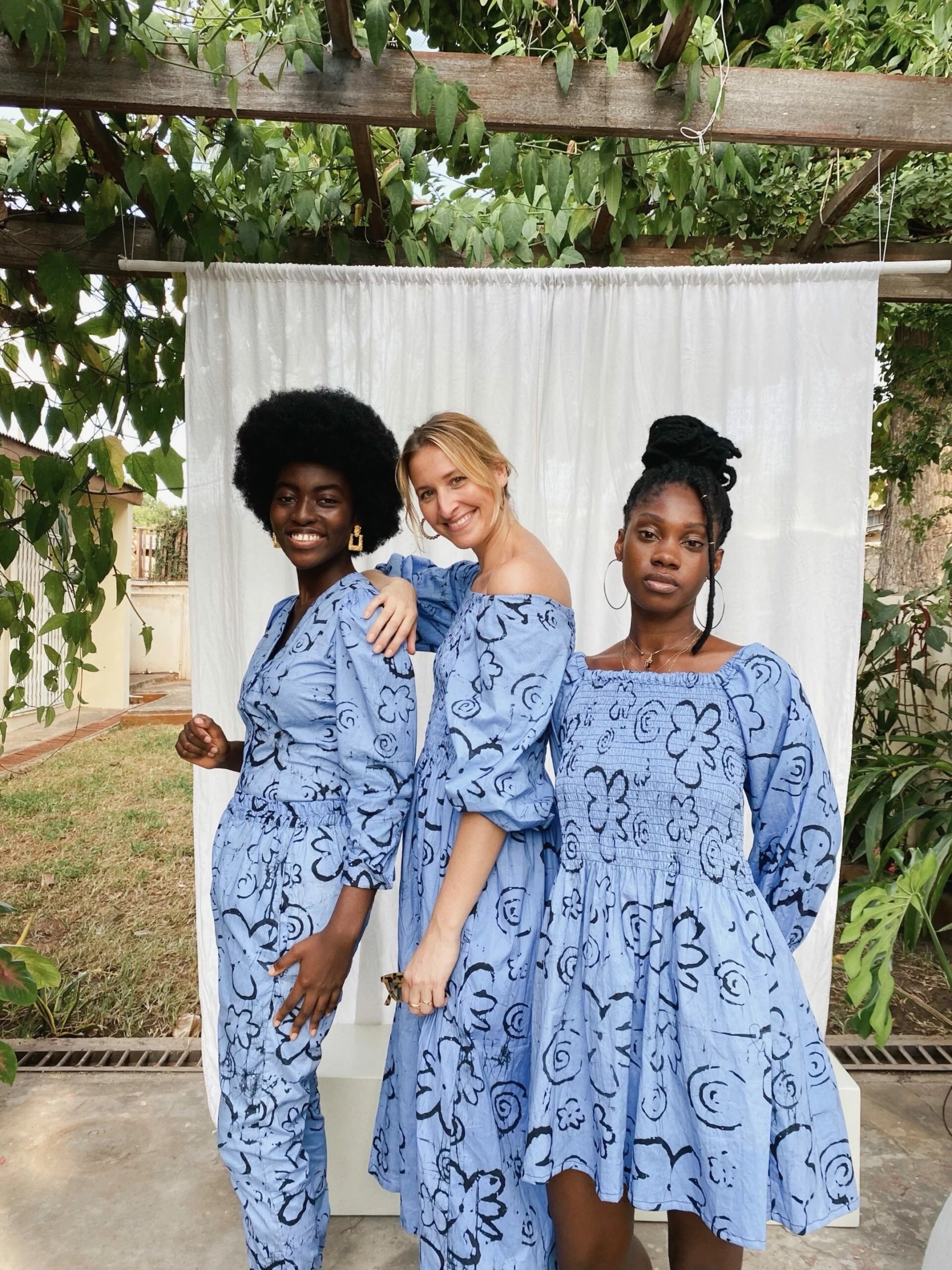 Kathrin Eckhardt lässt sich vom Rhythmus Ghanas leiten. Nichts funktioniert nach westlichem Zeitverständnis und darin liegt eine Qualität. Die Qualität der Flexibilität, der Inspiration im Moment und Improvisation. So ist jedes Kleidungsstück in Stoff und Farbe einzigartig. Neben den eingekauften Vintagestoffen kreiert die Designerin ihre eigenen Stoffe.